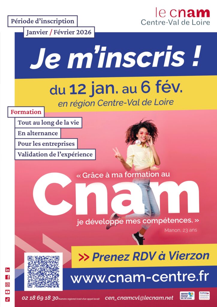 Du 12 janvier au 6 février 2026 : Période d’inscription CNAM Centre Val de Loire.
